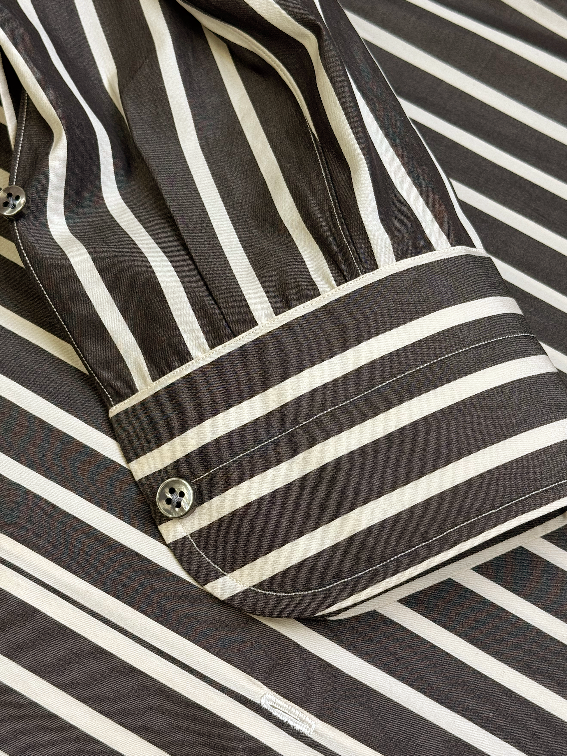 Hand Finished Details: Hand-sewn buttons and buttonholes with silk thread for durability, refinement, and longevity.