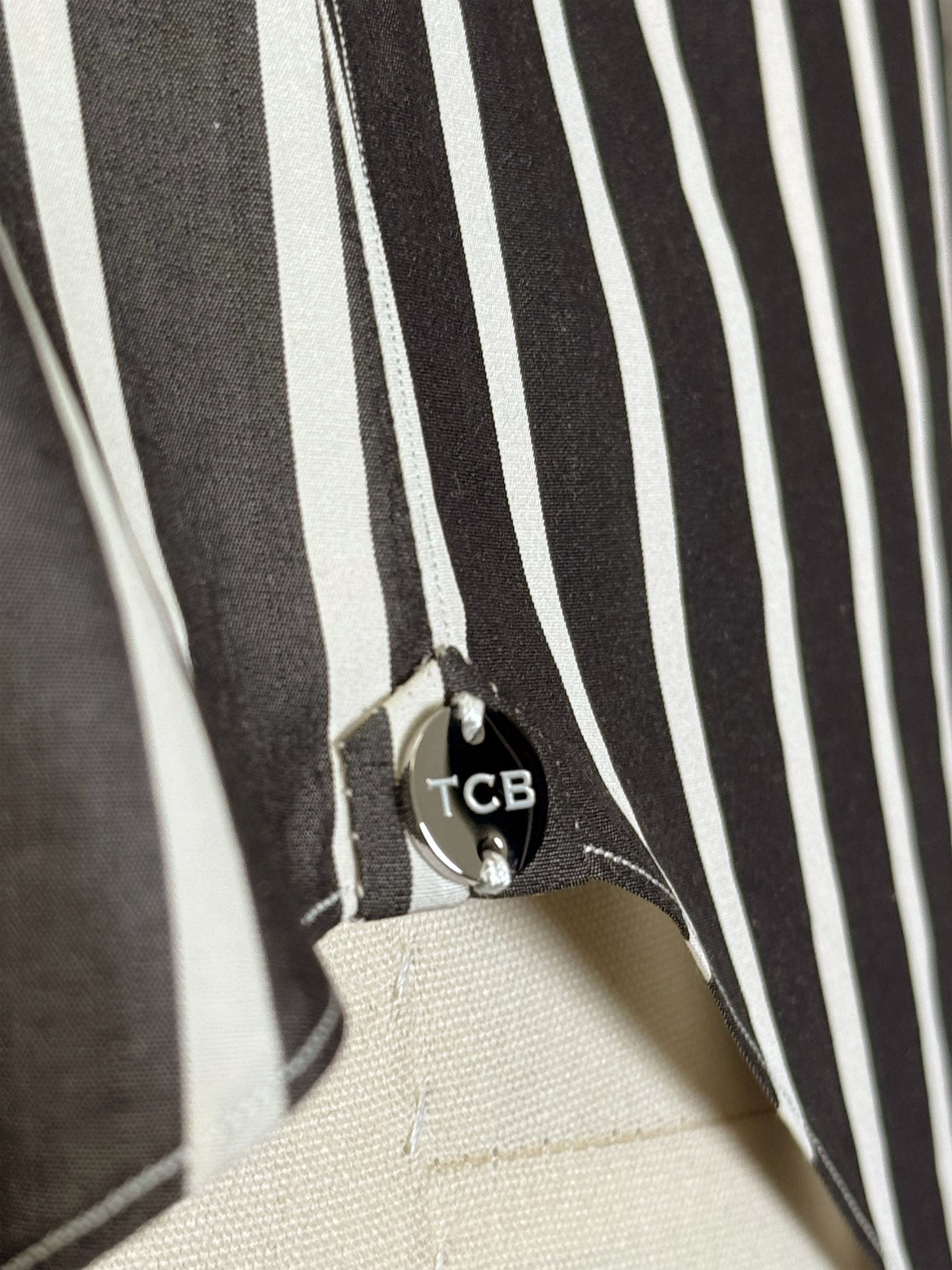TCB Innovative Sewn-in Interlining: A surprisingly soft yet structured collar and cuff support system designed in-house by TCB. Constructed from sewn-in cotton layers that provide exceptional support without stiffness, rather than iron-fused interlinings used by the vast majority of brands worldwide–where synthetic adhesive glue rubs directly against your skin at neck and wrists. Our innovative technique results in superior comfort, breathability, and natural shape retention.